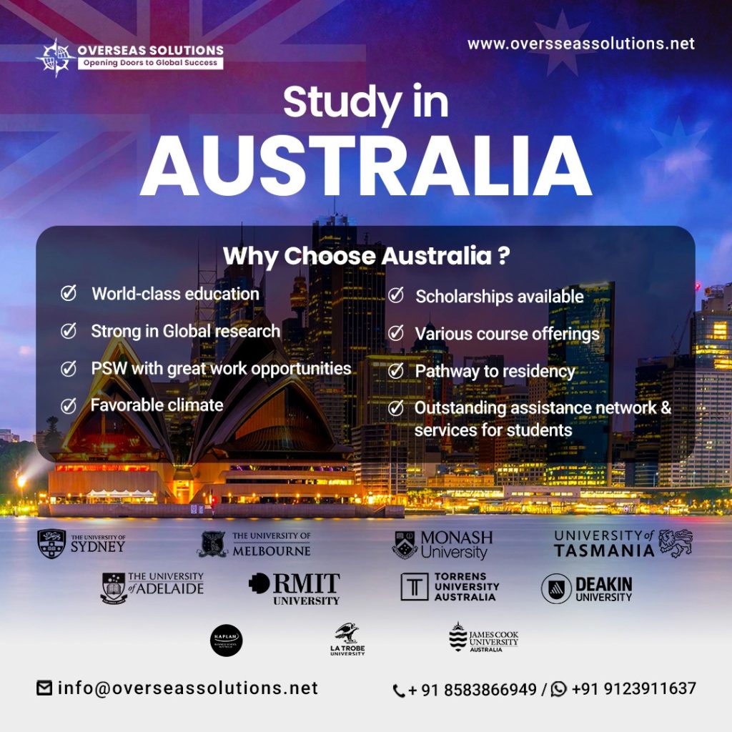 At Overseas Solutions, we guide you every step of the way — from choosing the right course and university to securing admission, visa processing, accommodation, and scholarships. With our expert support, your dream of studying in Australia becomes a smooth and successful reality.