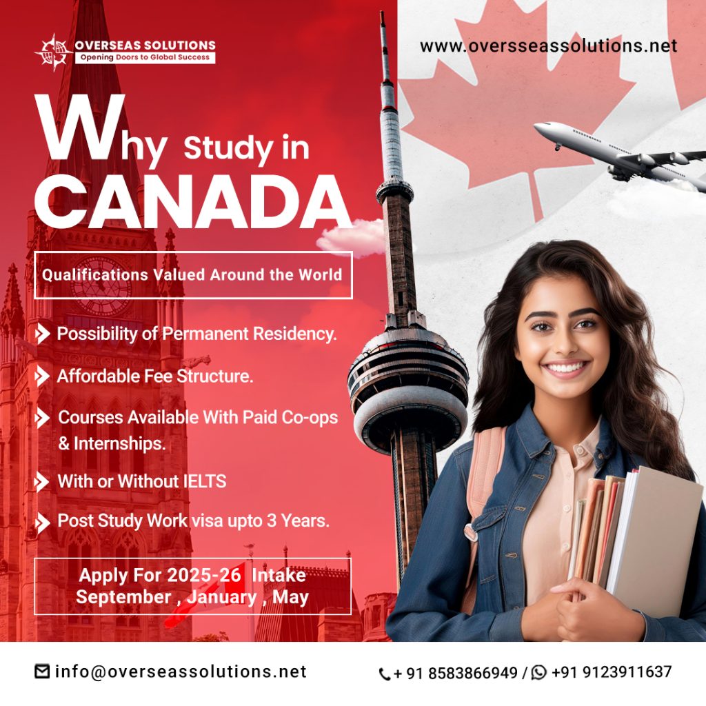 At Overseas Solutions, we guide you every step of the way โ from selecting the right course and university to securing admission, visa processing, housing, and scholarships. With our expert support, your dream of studying in Canada becomes a smooth and successful reality.