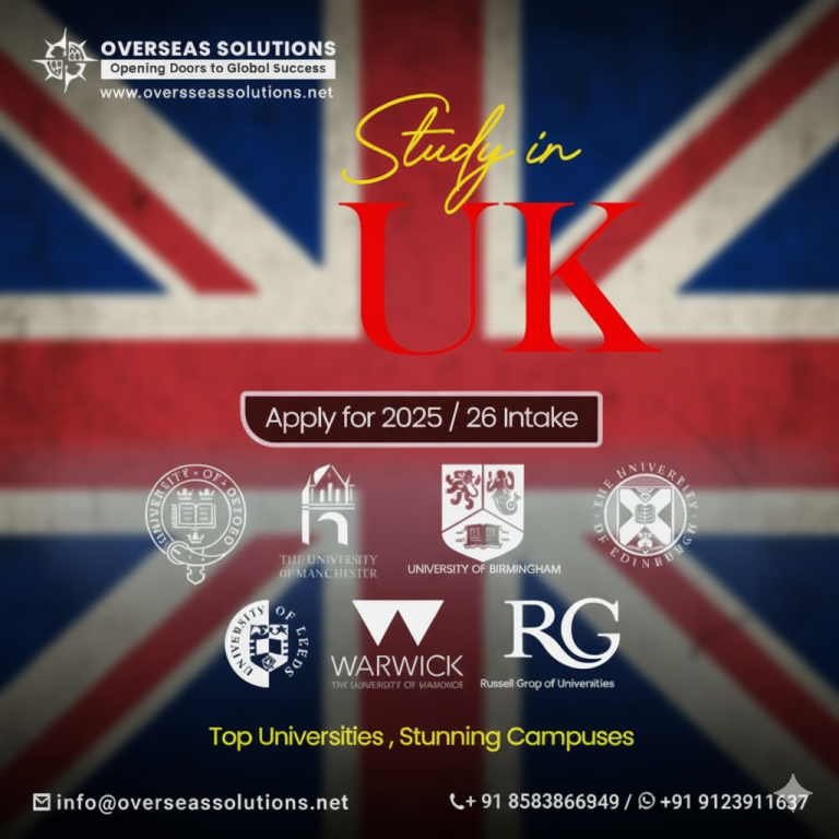 At Overseas Solutions, we guide you every step of the way — from selecting the right course and university to securing admission, visa processing, housing, and scholarships. With our expert support, your dream of studying in the UK becomes a smooth and successful reality.
